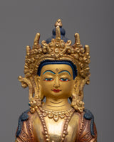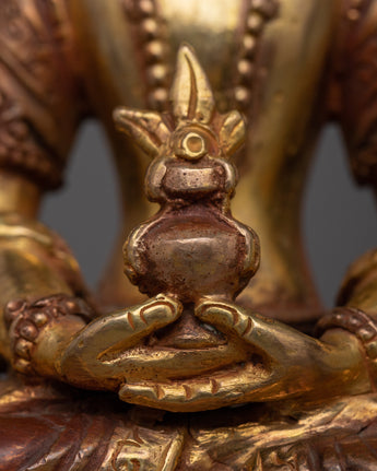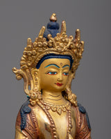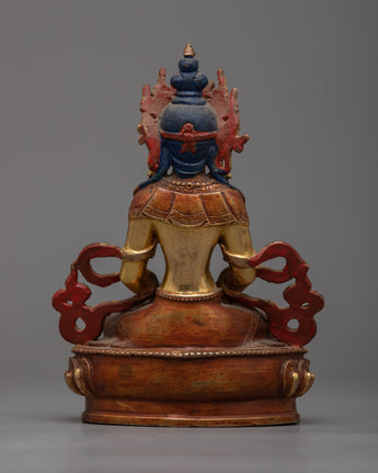 Amitayus, also known as Amitabha, is regarded as the Buddha of Infinite Life in Buddhist teachings. Amitayus is a bright emblem for individuals trying to transcend the fleeting essence of existence and tap into unlimited spiritual vigor, bestowing the benefits of longevity, merit, and insight upon his believers.