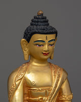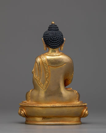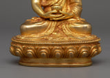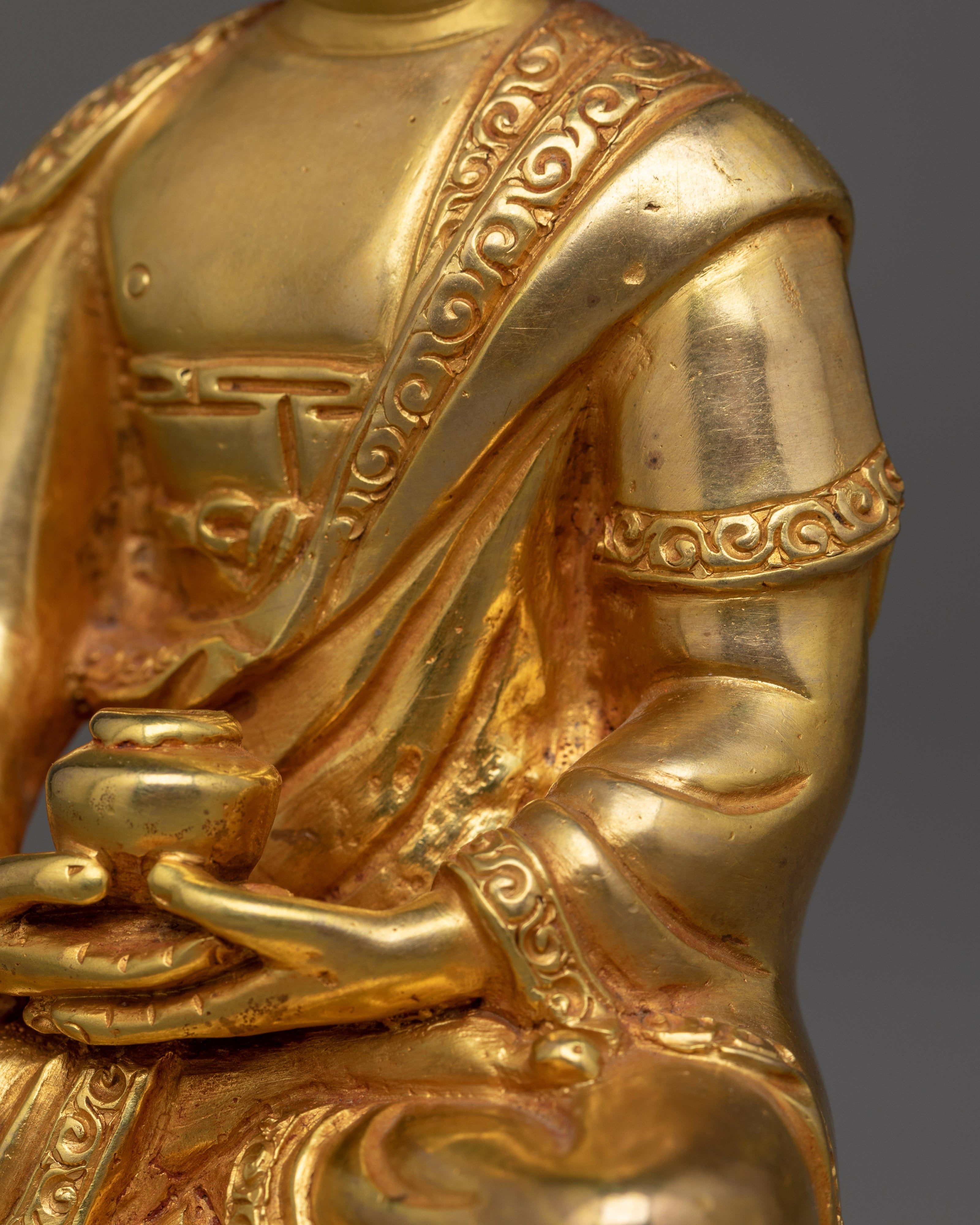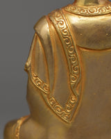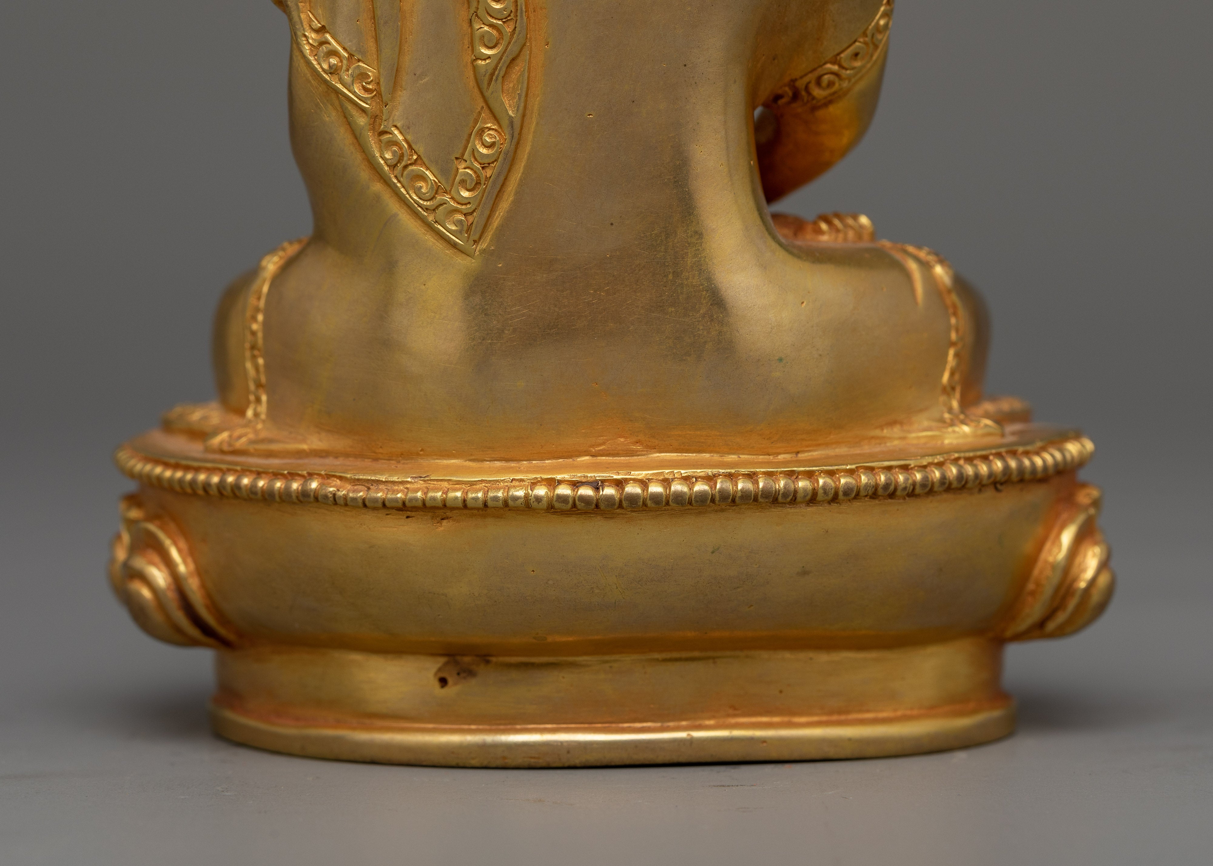 This amazing statue has a copper body that has been skillfully crafted and is gilded in 24K gold. Gold and acrylic paintings accentuate Amitabha's look and the elaborate patterns on his clothing, giving the picture more depth and vitality. Its substantial presence and weight of 0.562 kg make it perfect for any area used for spiritual development, meditation, or observation.