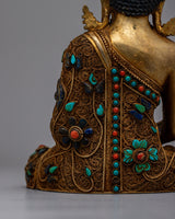 Handcrafted with precision and devotion, the Amitabha Buddha Statue Crystal is an everlasting emblem of enlightenment and compassion. The dazzling crystal complements the radiant copper, reflecting Amitabha Buddha's limitless wisdom and generosity. Every aspect of this monument, from the meticulous workmanship to the symbolic gemstone inlays, encourages reflection and spiritual inquiry.