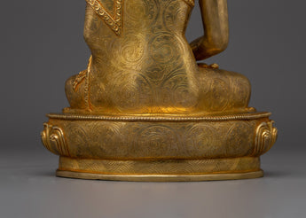 This Pure Land Buddha Amitabha Statue With Halo stands at 11.0” (28cm) in height with a base width of 7.9” (20cm). Crafted from a copper body, the statue is enhanced with 24K gold gilding, giving it a radiant finish. Intricate gold and acrylic paintings bring the statue's features to life, adding color and detail to the serene depiction of Amitabha Buddha. Crafted by expert artisans, this item embodies the rich traditions of Himalayan Buddhism, making it a valuable addition to altars, meditation spaces, or sacred collections.
