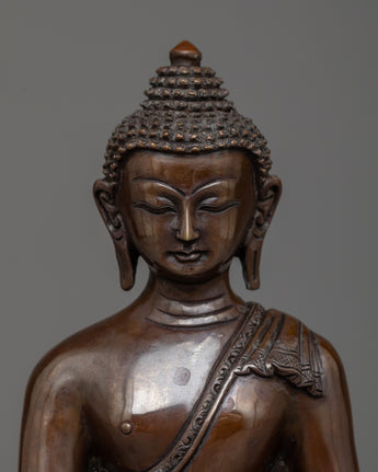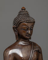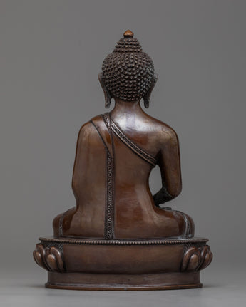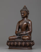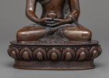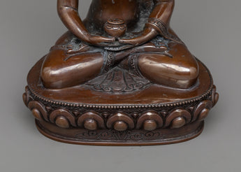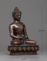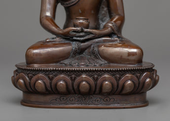 Introducing our carefully crafted Amitabha Buddha Statue, a powerful representation of compassion and enlightenment. This precisely crafted statue has an oxidized copper body and is 19.5 cm in height and 13 cm in breadth. It weighs 1.18 kg.