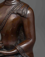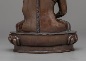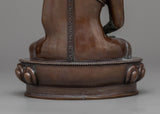 Renowned in Buddhist tradition as the Buddha of Infinite Light, Amitabha Buddha is portrayed in contemplative pose, exuding a sense of peace and spiritual resonance. The statue captures the awe and love shown to this holy person in every detail, from its finely crafted oxidized copper body to its delicate features.