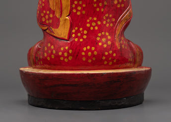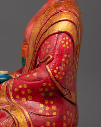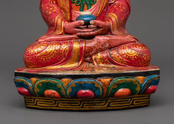 This hand-painted Amitabha statue, meticulously handcrafted by skilled artisans, embodies Tibetan Buddhist heritage. The Buddha, seated in deep concentration and holding a sacred bowl, radiates calmness and divine insight. This wooden sculpture is more than simply an artistic masterpiece; it is also a potent spiritual symbol that supporters believe will bring them to inner calm and enlightenment. Whether used for rituals, prayer, or house decor, this statue is a timeless reminder of spiritual enlightenment.