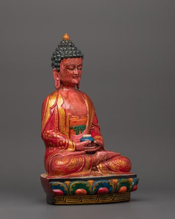 Amitabha Buddha Wooden Statue - Symbol of Infinite Light & Wisdom