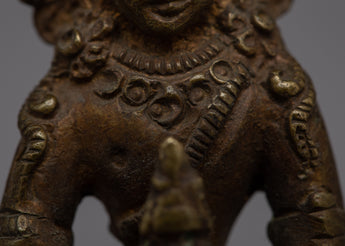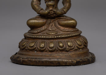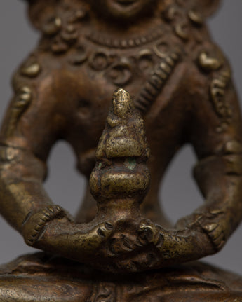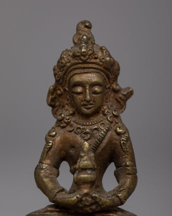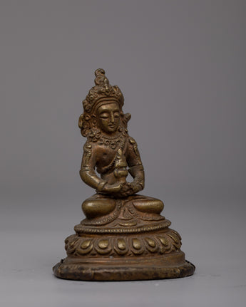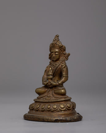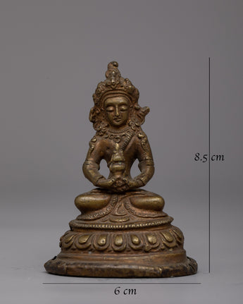Crafted from brass, the Amitayus Buddha of Long Life Statue is a stunning example of handiwork. This 8.5-cm-tall statue embodies the calm and loving nature of Amitayus, the Buddha of Infinite Life. Amitayus represents longevity, wisdom, and health, and his exquisite features and graceful posture are highlighted by his meticulous craftsmanship.