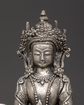 Amitayus Copper Body Silver Plated Statue | Buddhist Meditation Decor