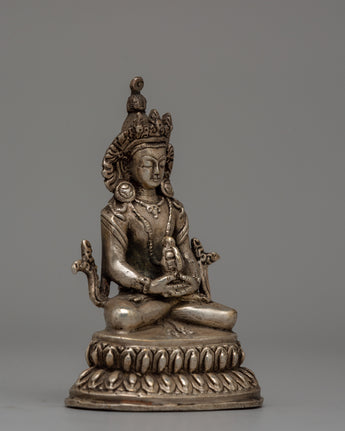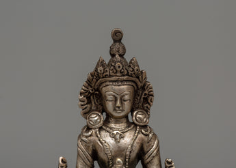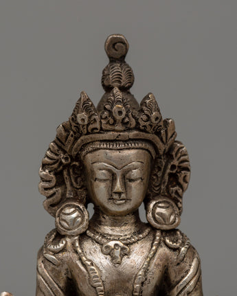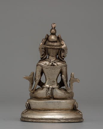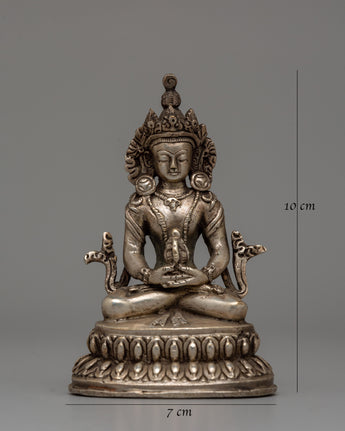 Handcrafted Silver-Plated Amitayus Statue with Long-Life Vase