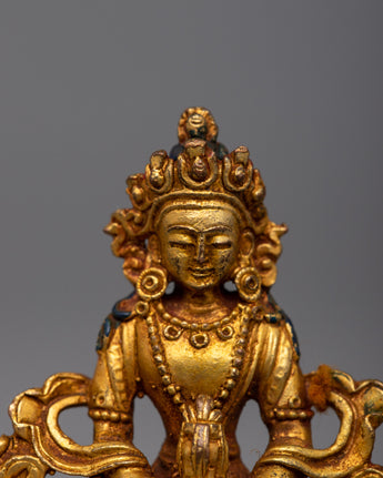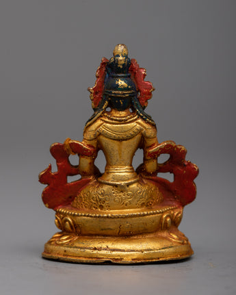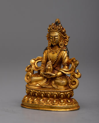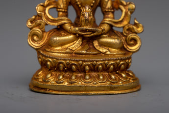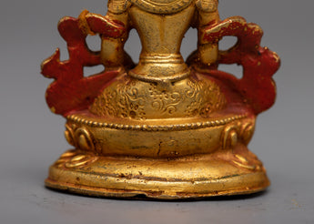 With the Amitayus Longevity Statue, you can witness the epitome of health and longevity. Standing six centimeters tall and shining a timeless elegance and spiritual importance, this magnificent masterpiece is crafted with exquisite precision on a copper body and lavishly ornamented with 24k gold plating.