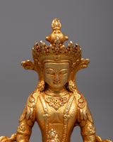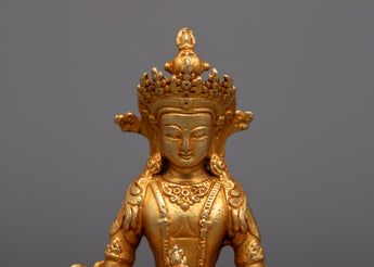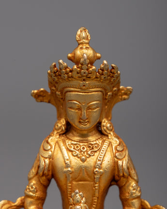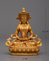 The Amitayus Statue is a potent representation of longevity and spiritual sustenance despite its diminutive size. Engaging with this holy image inspires followers to develop a life full of wisdom, compassion, and spiritual abundance. This beautiful statue serves as a beacon of hope and a reminder of the eternal quest for spiritual fulfillment and life beyond death, whether it is positioned on an altar or utilized as a focus point for meditation.