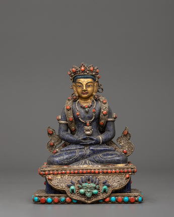 Handcrafted Amitayus Seated In Throne Statue with Lapis Lazuli Stone Body