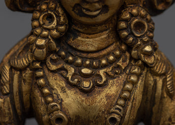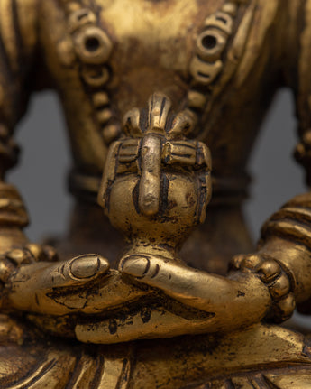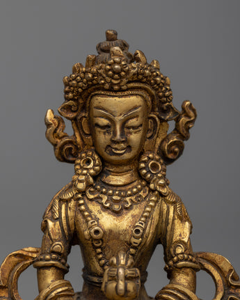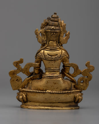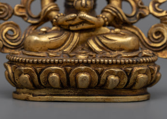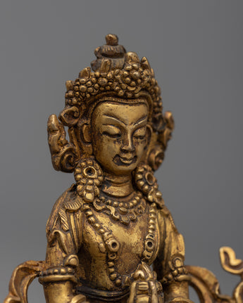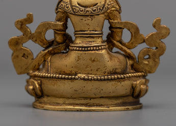 Exquisite Amitayus Sculpture meticulously handcrafted on a copper body and accentuated by a luminous 24k gold plating, grounded on an 8cm base.
