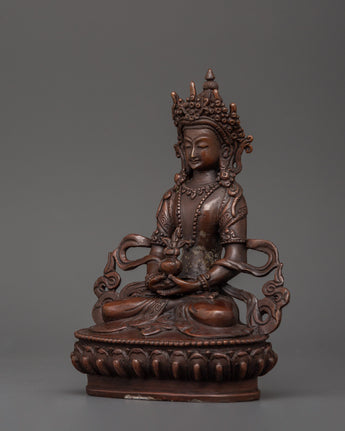 Amitayus Statue in Oxidized Copper | Spiritual Decor
