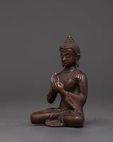Vairocana is regarded as the most important of the Five Dhyani Buddhas in Tibetan Buddhism. He represents the realization of Dharmakaya and the purifying of ignorance. In his traditional teaching mudra, Vairocana is seen in this exquisitely crafted brass statue, exuding serenity and wisdom. This Authentic Vairocana Buddha statue is a potent reminder of inner truth and awakened consciousness, whether utilized in spiritual rituals, tantric practice, or daily meditation.