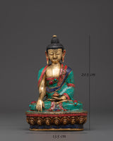 Brass Gautama Buddha Statue | Enlightened One in Vibrant Turquoise & Coral