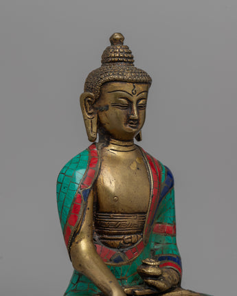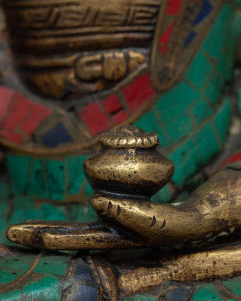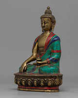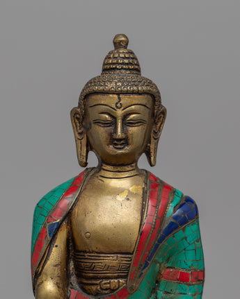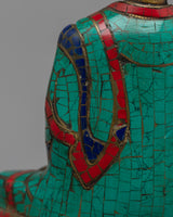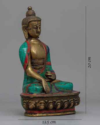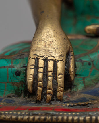 Experience serenity like never before with the Brass Shakyamuni Buddha Statue. Crafted with a brass body and adorned with the calming hues of turquoise, coral, and blue lapis, this 20cm tall masterpiece exudes an aura of inner peace and enlightenment.