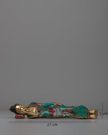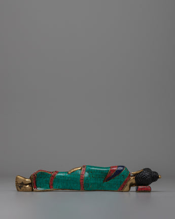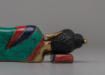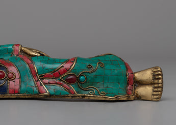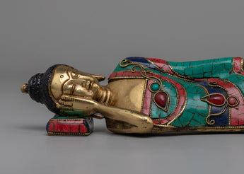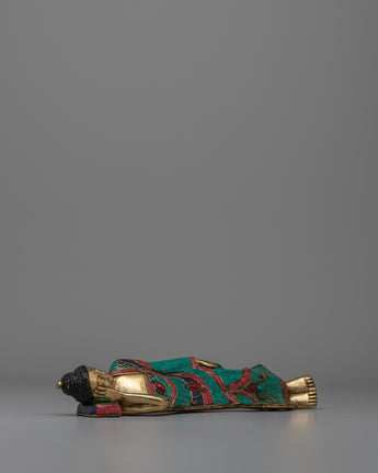 Brass Sleeping Buddha Statue | Symbolic Sleeping Buddha with Coral and Turquoise Inlay