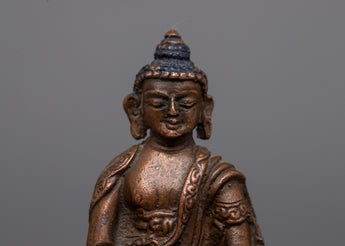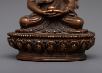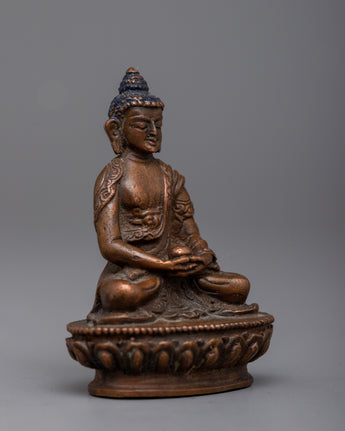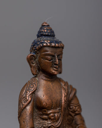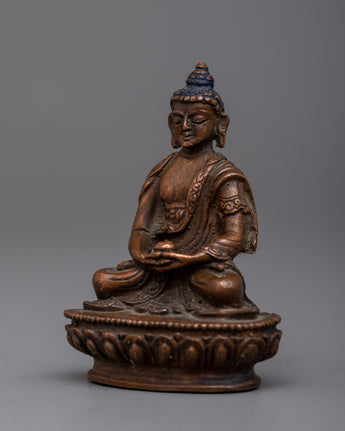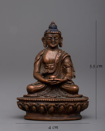 The Buddha Amitabha Statue transports you to a place of unlimited compassion and enlightenment. Crafted by machine with perfection on an oxidized copper body, this sacred figure stands at 5.5cm tall and exudes a sense of profound tranquility and wisdom.