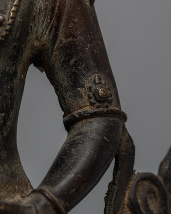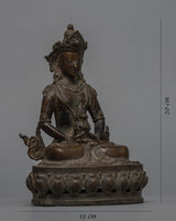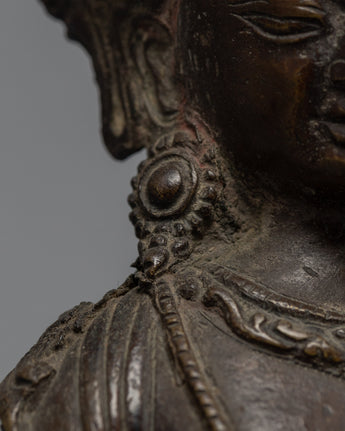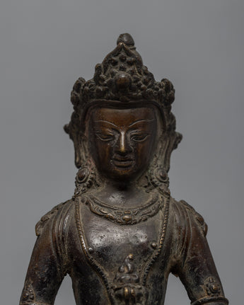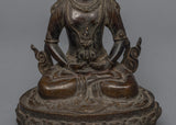Allow me to introduce the captivating Buddha Amitayus Statue, a vintage masterpiece meticulously handcrafted on a lustrous copper medium. This statue carries the essence of antiquity, embodying the rich history and profound spirituality that has traversed time. The intricate details of the statue's form, from the serene countenance to the flowing robes, are a testament to the skill of its creators and the depth of their devotion. Each curve and contour tells a story of reverence, and the copper body exudes a timeless allure that draws you into its presence. With a history that spans generations, this Buddha Amitayus Statue stands as a symbol of wisdom, compassion, and the profound journey of spiritual enlightenment.