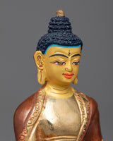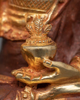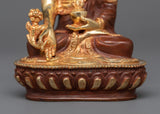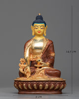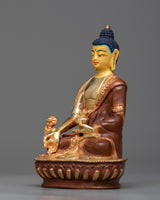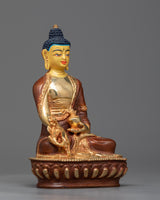 Discover the profound calm and healing energy that the Buddha Medicine Statue, which is beautifully sculpted on a copper body and plated in bright gold, embodies. This statue exudes serenity and spiritual grace as it stands elegantly at 14.5 cm in height and 9 cm in breadth.