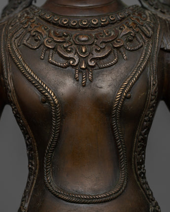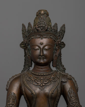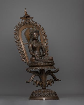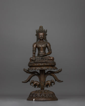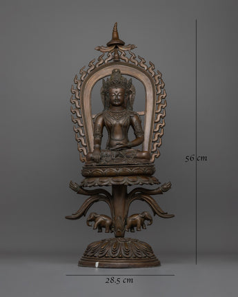 This Shakyamuni Buddha Statue is not just a spiritual object, but also a gorgeous work of art that brings peace and reverence to any setting. Whether displayed in a meditation room, sacred shrine, or as a beautiful centerpiece, this statue is a timeless reminder of the Buddha's teachings and the way to inner peace. Its large size, detailed craftsmanship, and oxidized copper finish make it a distinctive and important addition to any home or spiritual collection.