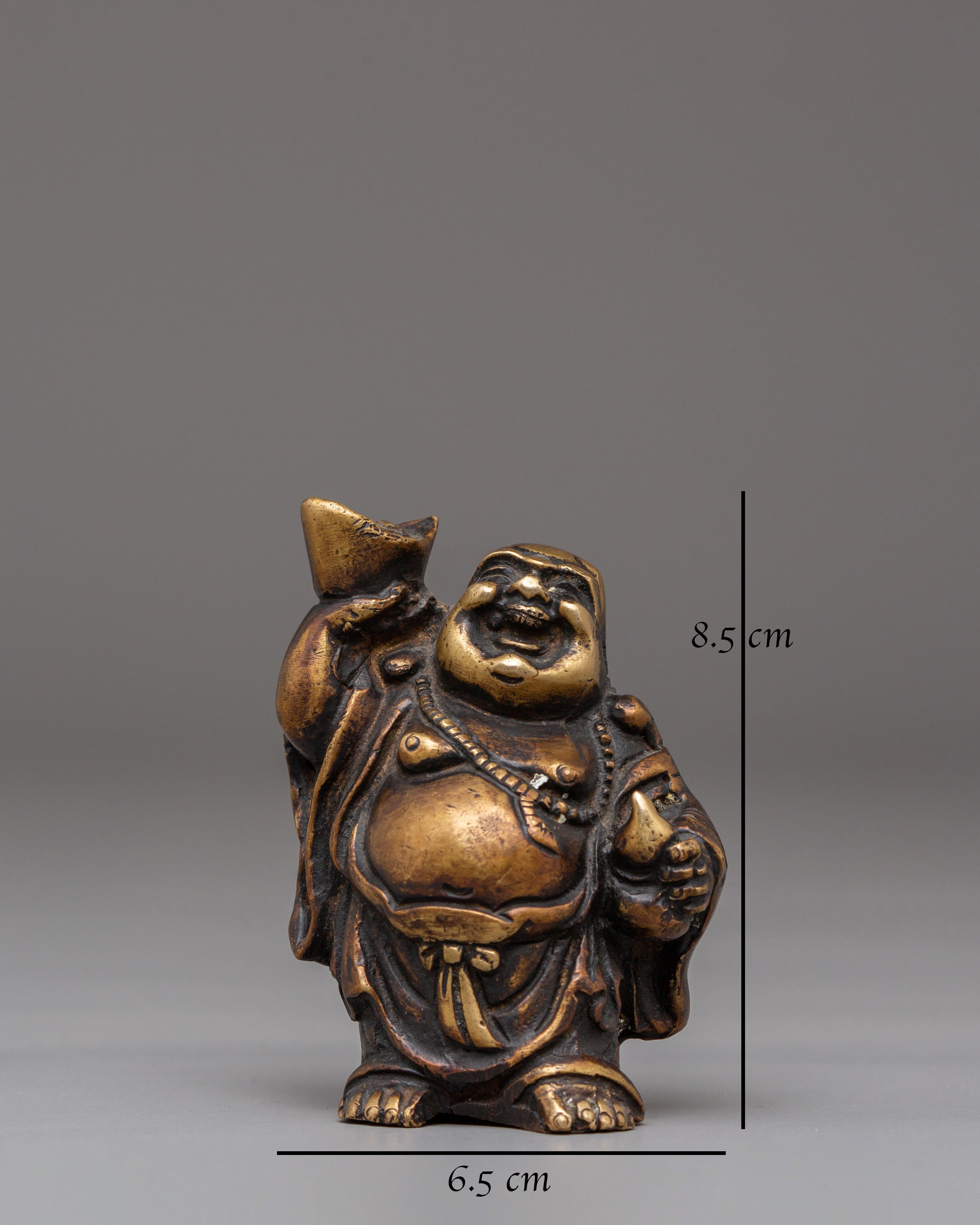 The Laughing Buddha is a timeless symbol of joy, abundance, and positive energy, beautifully handcrafted from solid bronze. Measuring 8.5cm in height and 6.5cm in width, with a weight of 0.32kg, this compact yet powerful figurine is perfect for home décor, office desks, meditation spaces, or Feng Shui arrangements. The bronze finish gives the statue a warm, elegant presence while ensuring spiritual significance.