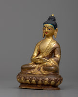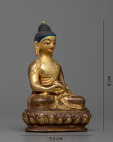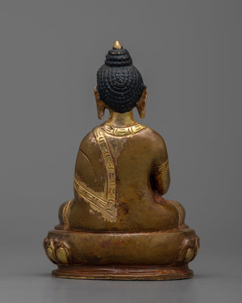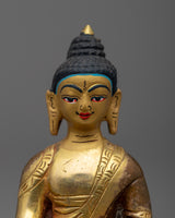 The elaborately handcrafted copper body showcases the artisan's devotion and attention to detail, and the lavish 24k gold gilding adds an additional layer of grandeur, emphasizing the Amitabha Buddha's profound significance. This spiritual icon comes to life thanks to the acrylic painting, which gives the statue life and heavenly energy.