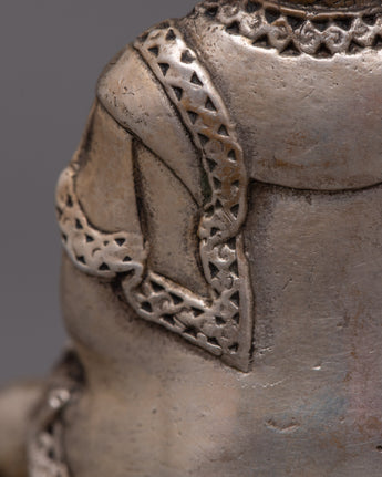 The statue reminds us of Amitabha Buddha's promise to lead sentient beings toward enlightenment and freedom from suffering with its peaceful look and elegant pose. Due to its small size, it is perfect for personal altars, meditation areas, or as a meaningful present that promotes inner calm and spiritual development.