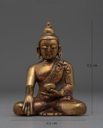Handcrafted with meticulous dedication to detail from copper, the Shakyamuni Copper Buddha Statue is a stunning expression of spiritual grace. This statue, which stands 8.5 cm tall, skillfully and meticulously conveys the spirit of Shakyamuni Buddha's calm and enlightened presence. Rich copper material gives the statue a warm, timeless touch, improving its spiritual and visual appeal.