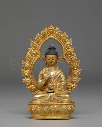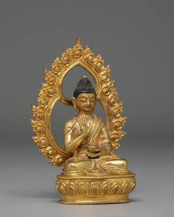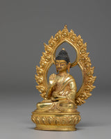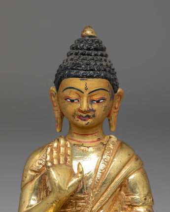 Handmade Copper Statue of Amogasiddhi Buddha | Gold Plated Tibetan Buddha Statue for Altar