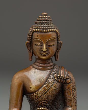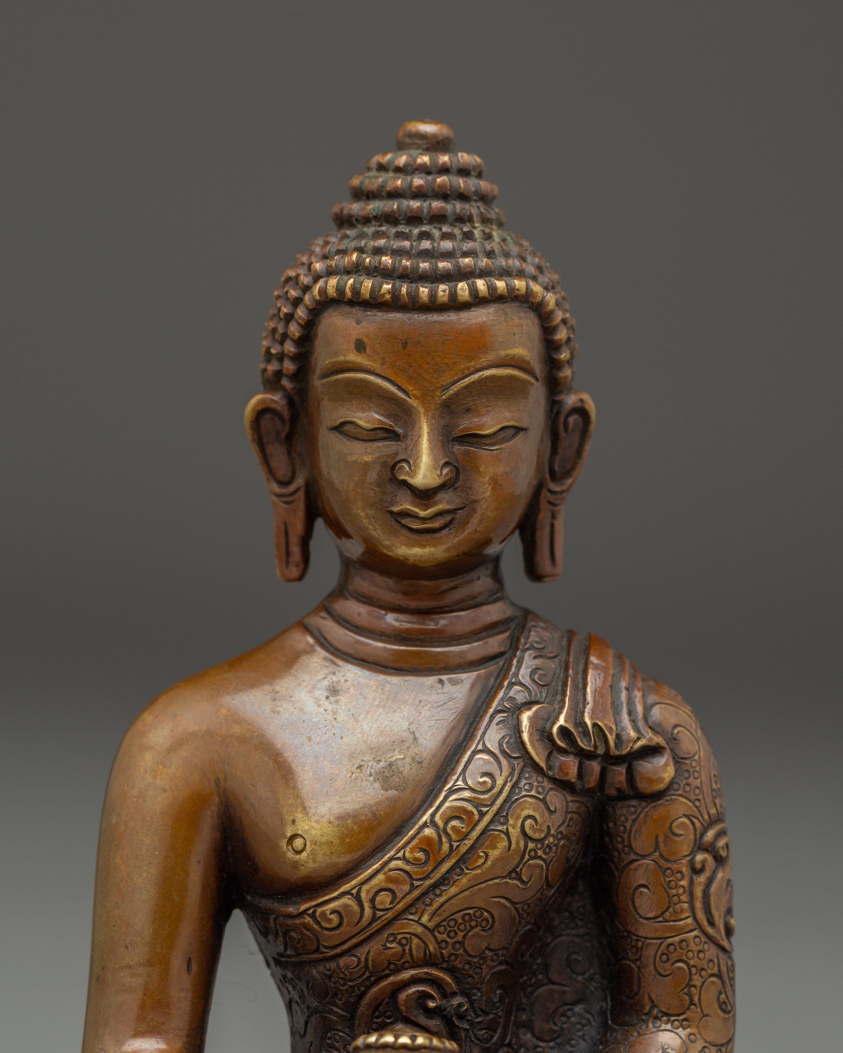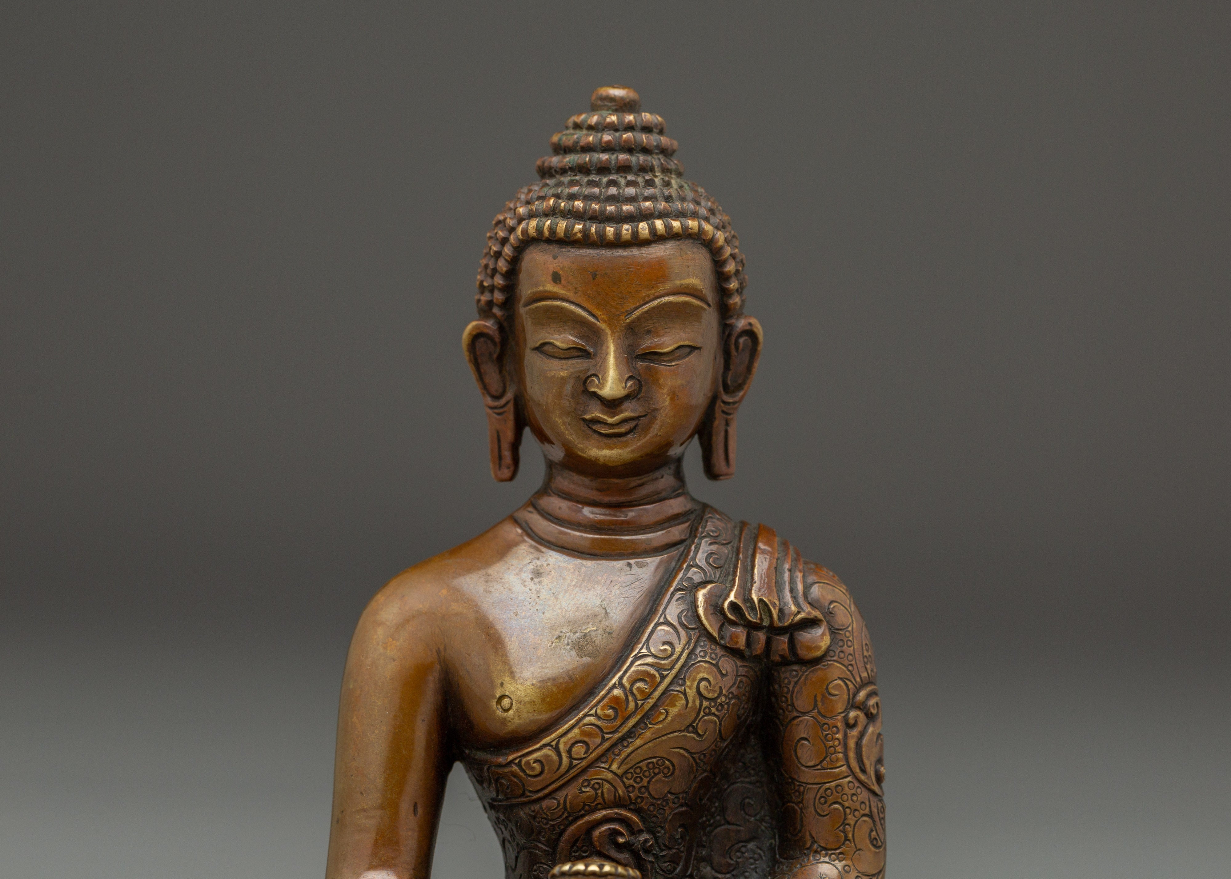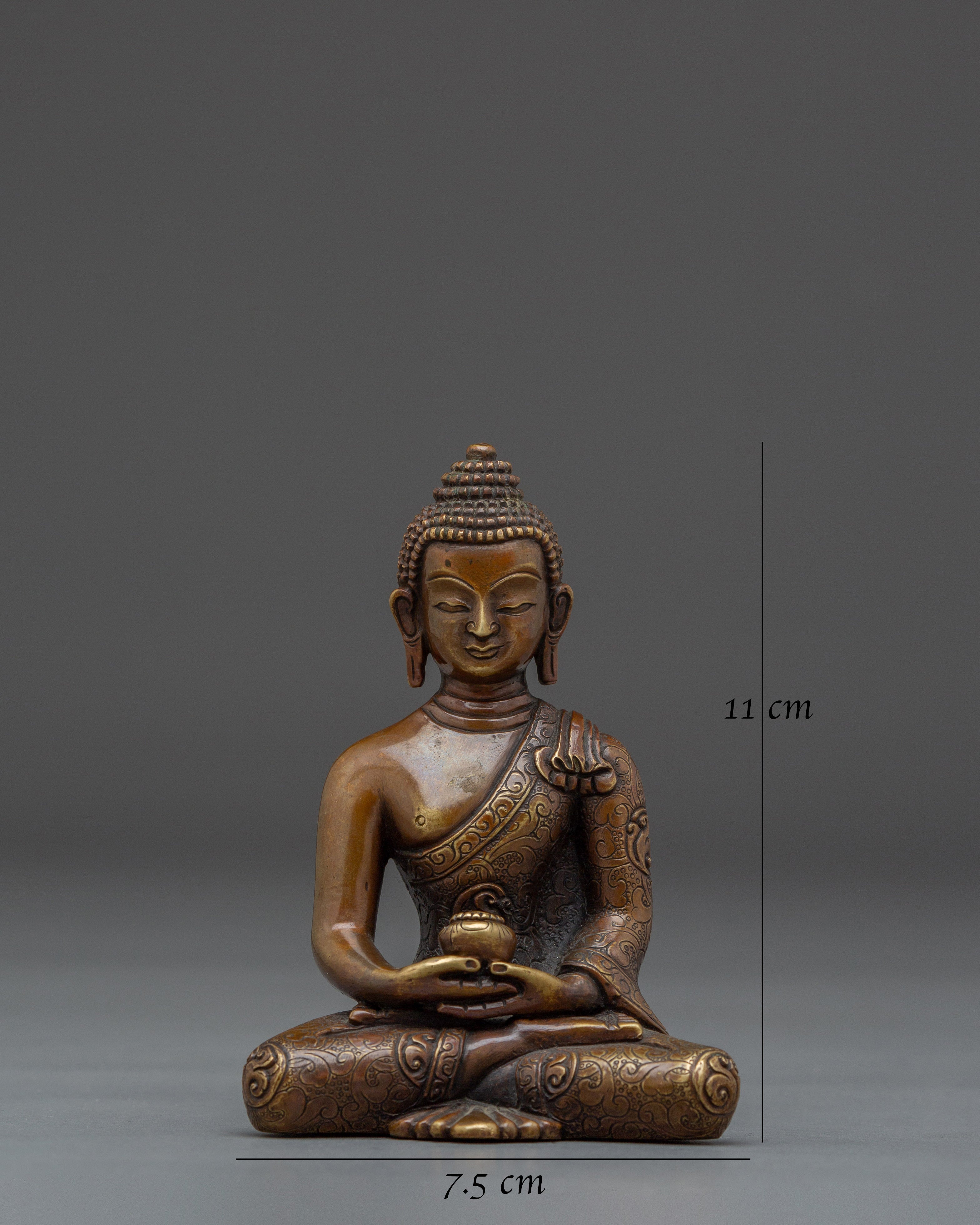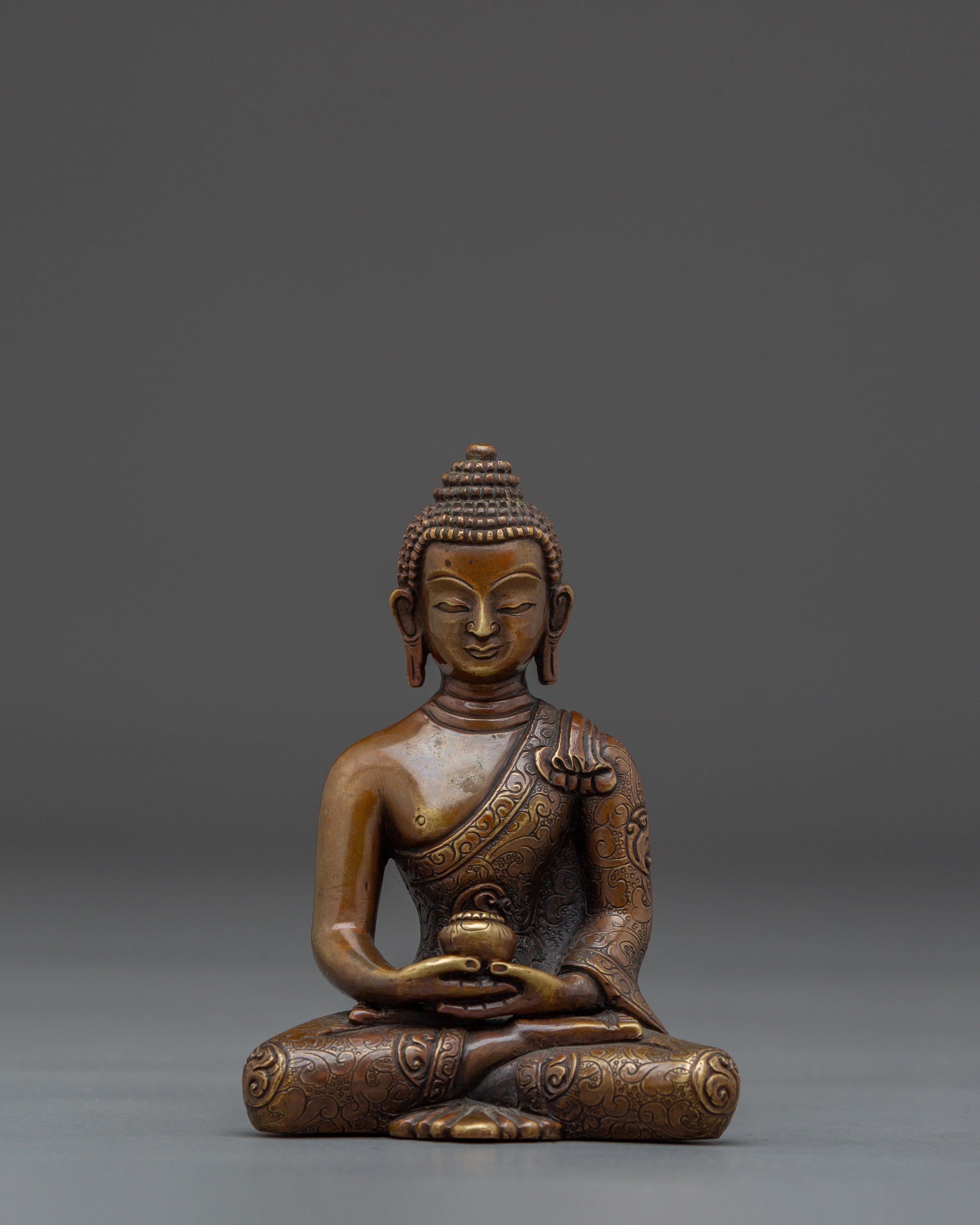 The Handcrafted Divine Amitabha Buddha Sculpture embodies peace, compassion, and spiritual enlightenment, enhancing any space with its serene presence. Depicting Amitabha Buddha in a graceful reclining posture, the sculpture shows him holding a bowl, symbolizing his role as a generous provider of spiritual nourishment. Expertly crafted from oxidized copper, the detailed engravings and delicate designs showcase traditional Buddhist artistry, highlighting the Buddha’s calm and compassionate nature. This sculpture is an ideal centerpiece for meditation rooms or sacred spaces, inviting a sense of tranquility and deep reflection to uplift your environment.