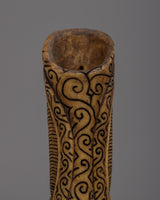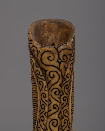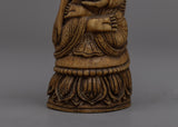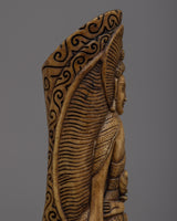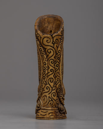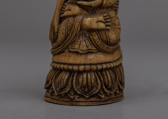 Experience the calming presence of the Shakyamuni Buddha Statue, which was crafted by hand using bone that was obtained ethically. The essence of the enlightened being is captured by the intricate carving of every small detail onto the bone. The Buddha's serene demeanor exudes serenity and compassion, inviting you to find comfort and enlightenment on your own personal spiritual path. The statue's distinctive design features add to its beauty and make it a truly captivating work of art. Let the Shakyamuni Buddha's enlightenment and peace inspire you as you study this masterpiece and lead you to inner peace and awakening.