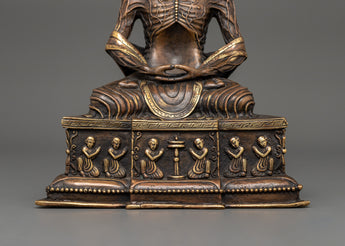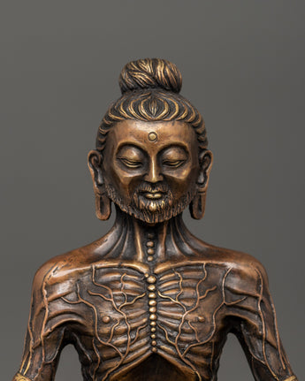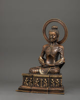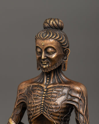 This intricately designed statue, handcrafted from pure copper with an antique finish, exemplifies excellent craftsmanship while stressing Buddha's dedication. The peaceful face and skeletal structure depict a profound path of self-discovery, making it an appropriate complement to any religious place. This fasting Buddha statue is ideal for Buddhist practitioners and collectors and a unique spiritual gift. It represents endurance and inner transformation.