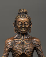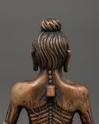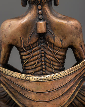 Copper Antique Finish Fasting Buddha Figurine for Meditation