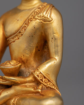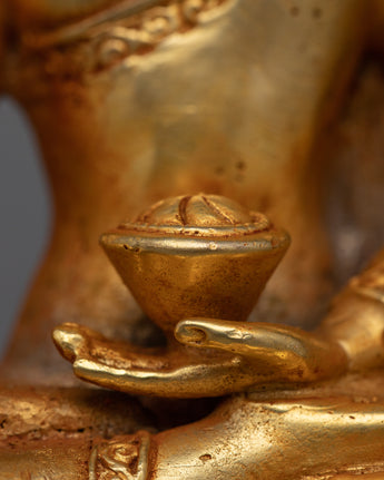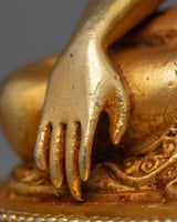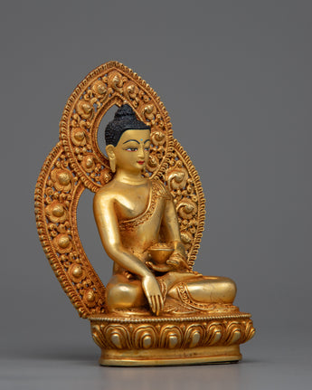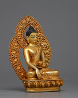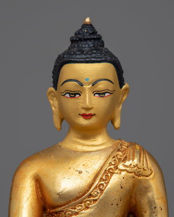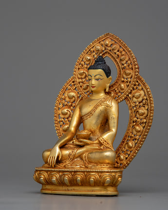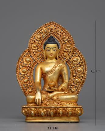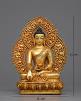 Introducing the Gautama Buddha Siddhartha Statue, a stunning symbol of enlightenment carved with precision on a copper body. This statue, adorned with bright electro gold plating, stands at a modest 15cm height and exudes a peaceful presence wherever it is put.