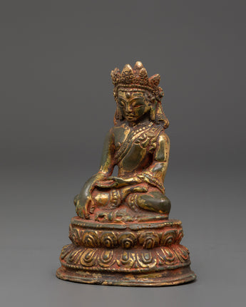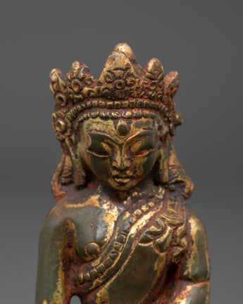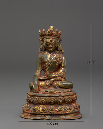 Gold Inlaid Crown Shakyamuni Buddha Statue | Tibetan Copper Statue