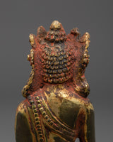 This handcrafted artwork showcases skillful artistry and spiritual commitment. The placid facial expression exudes inner peace, while the intricate crown and golden highlights emphasize the Buddha's enlightened status. The pose represents meditation and balance, helping practitioners achieve clarity and harmony. The statue, created by talented artisans, is more than just a work of beauty; it is a precious tool for connecting with Buddhist teachings and nurturing spiritual practice.