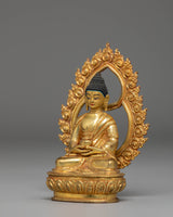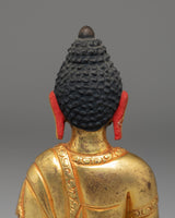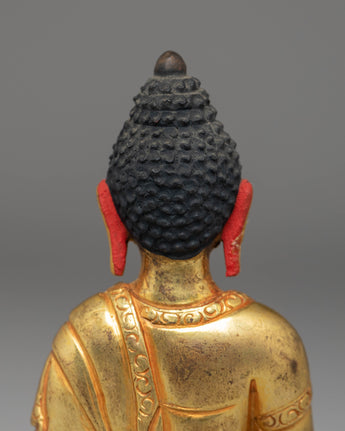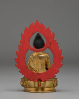 This Golden Statue of Amitabha Buddha is a refined work of Tibetan spiritual artistry, crafted to elevate your meditation corner, Buddhist altar, or sacred home space. Measuring 12cm in height and 8cm in width, this compact yet powerful statue weighs 0.86kg, ensuring a grounded and substantial presence. The gold-plated copper body radiates a serene, perfectly capturing the divine essence of Amitabha Buddha.