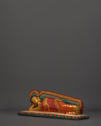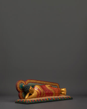 Hand-Carved Wooden Sleeping Buddha Statue | Peaceful Buddhist Art for Meditation Space