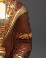 This statue, which is made of copper and lavishly gilded with 24k gold, exudes a sense of divinity. The meticulous acrylic painting brings each detail to life by adding depth and vibrancy.