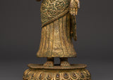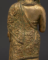 This handcrafted Dipankara Buddha statue, a representation of enlightenment and tranquility, will bring peace, mindfulness, and spiritual energy into your home. This exquisitely crafted statue, measuring 28 cm in height and 12.5 cm in width, boasts a deep golden tone and classic appeal due to its pure brass composition. It is a powerful item that weighs 1.18 kg and is ideal for home altars, meditation nooks, or spiritual interior design.