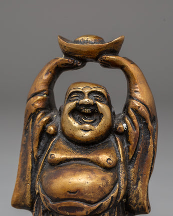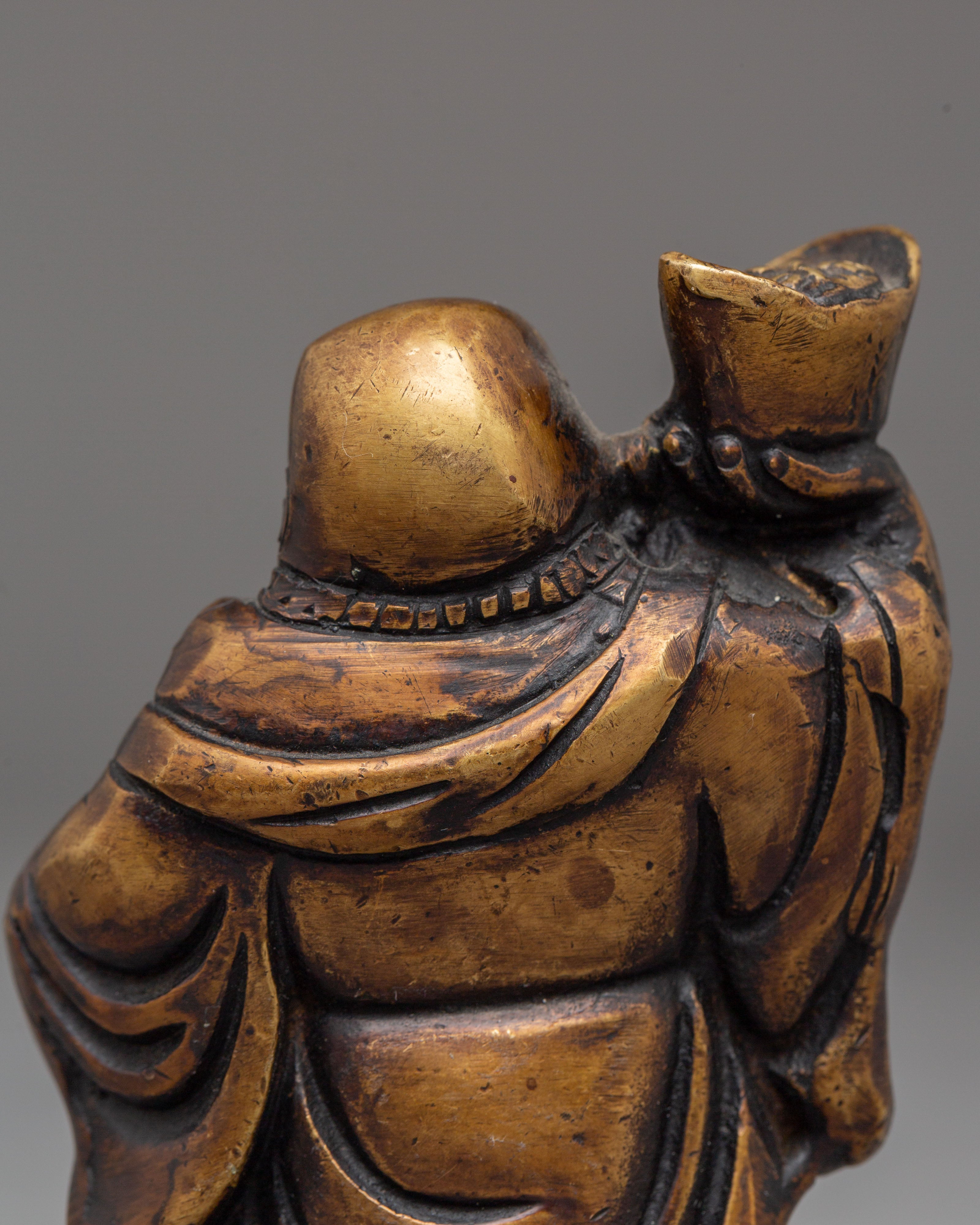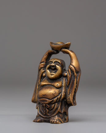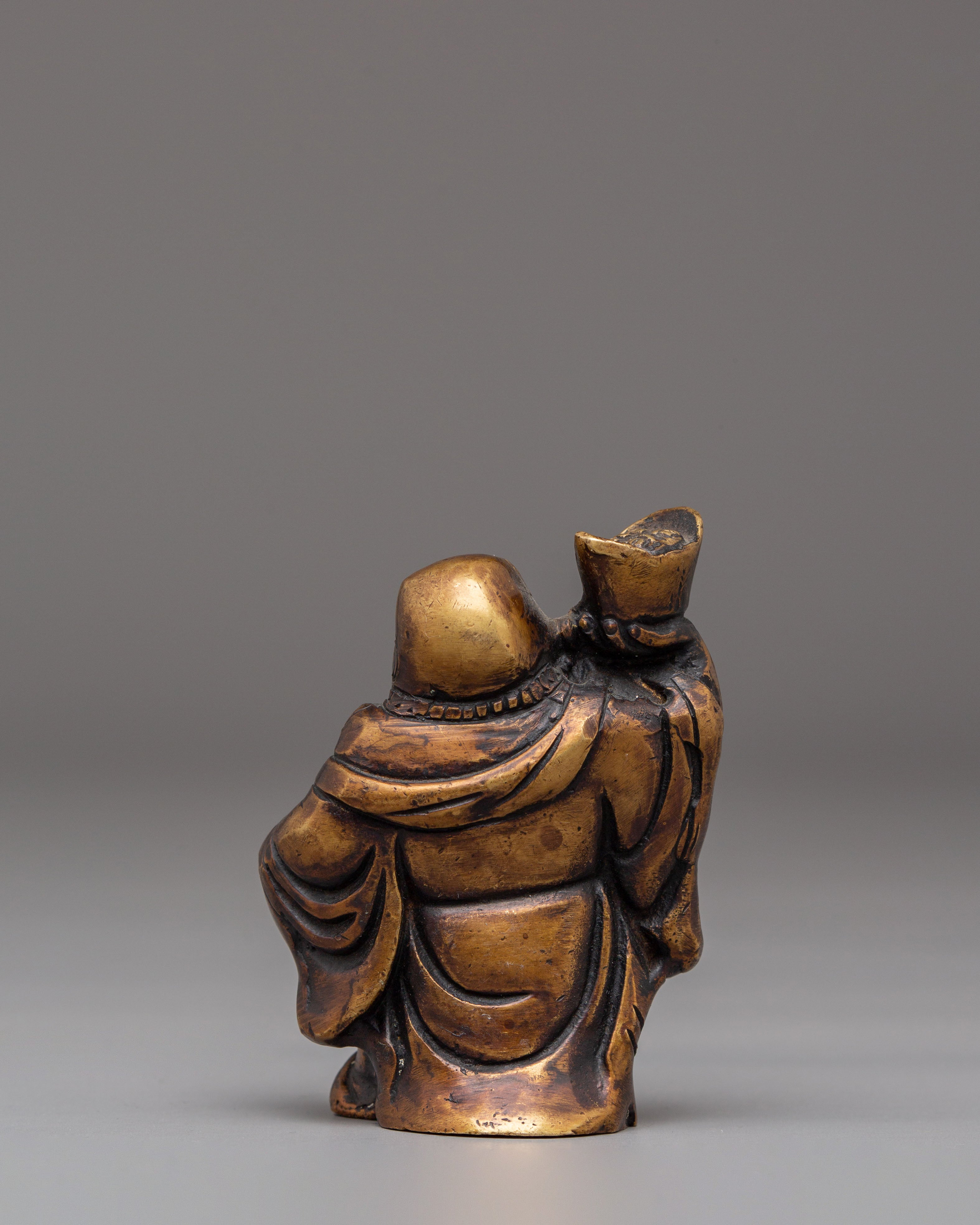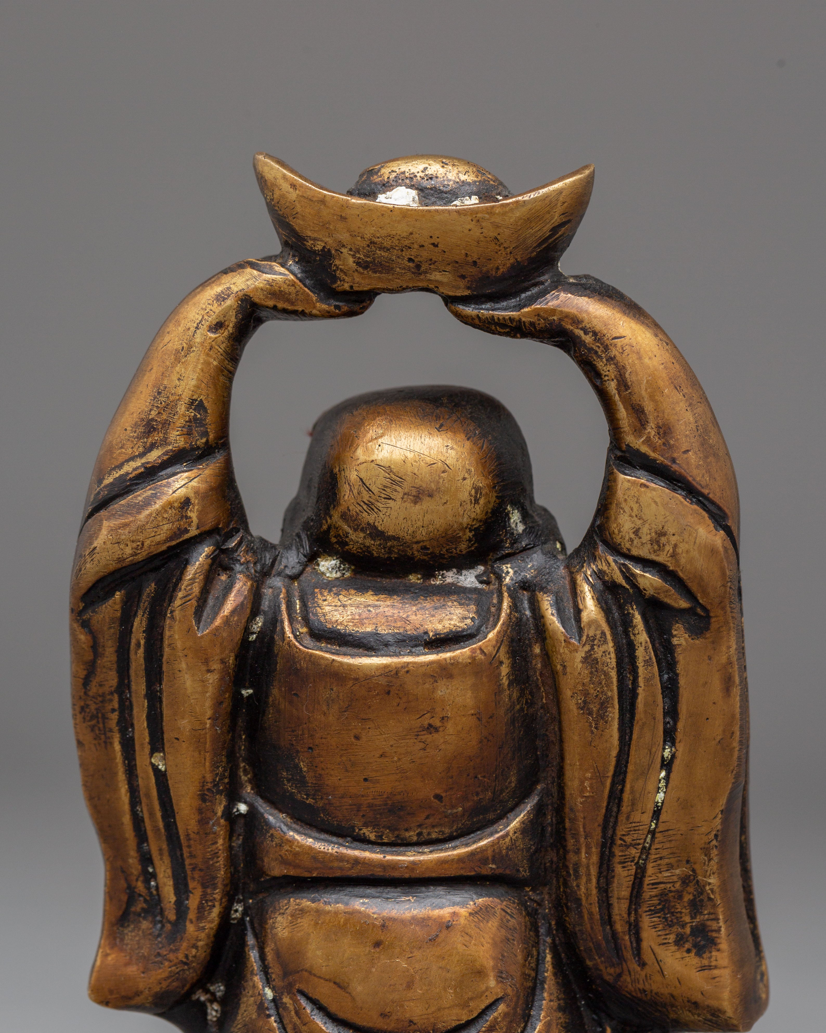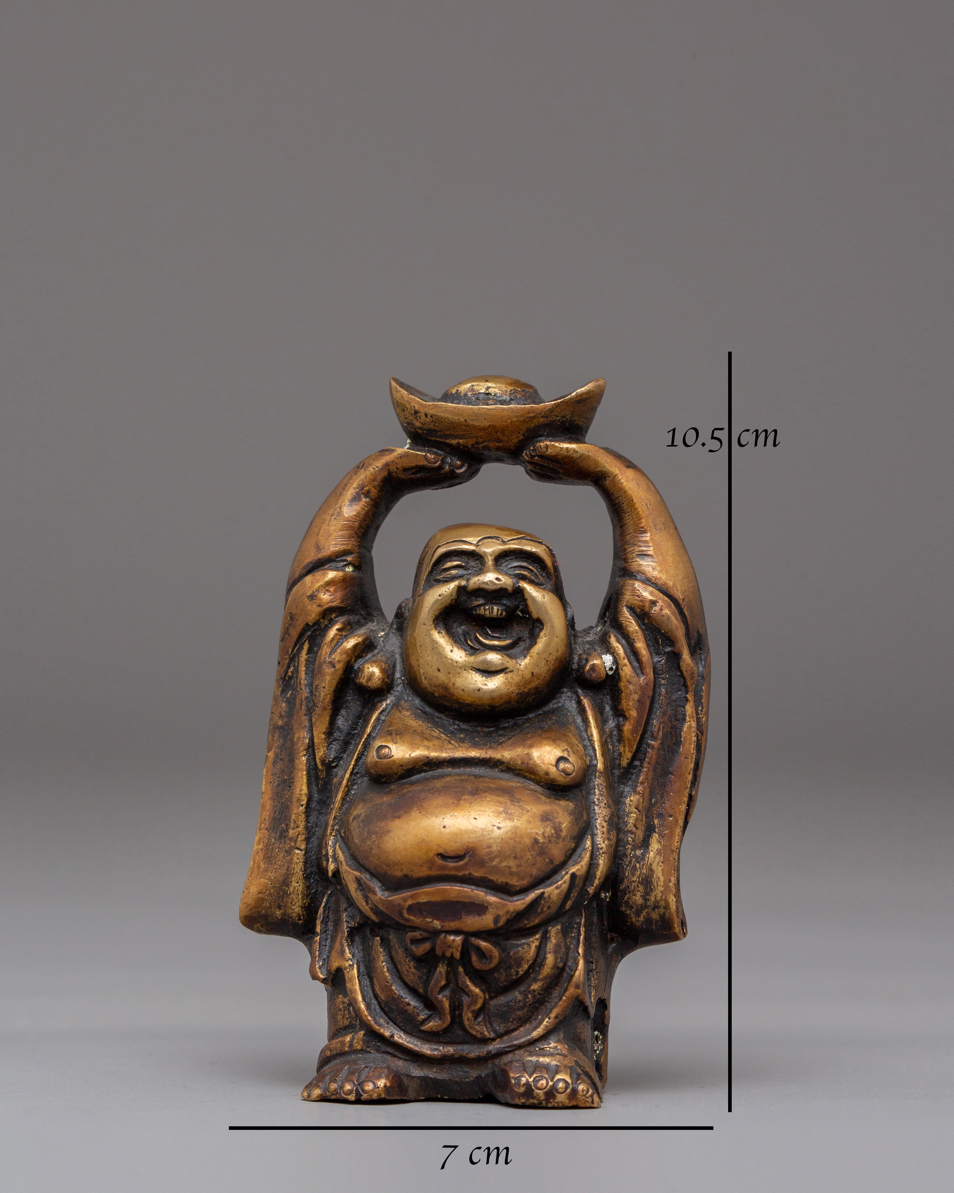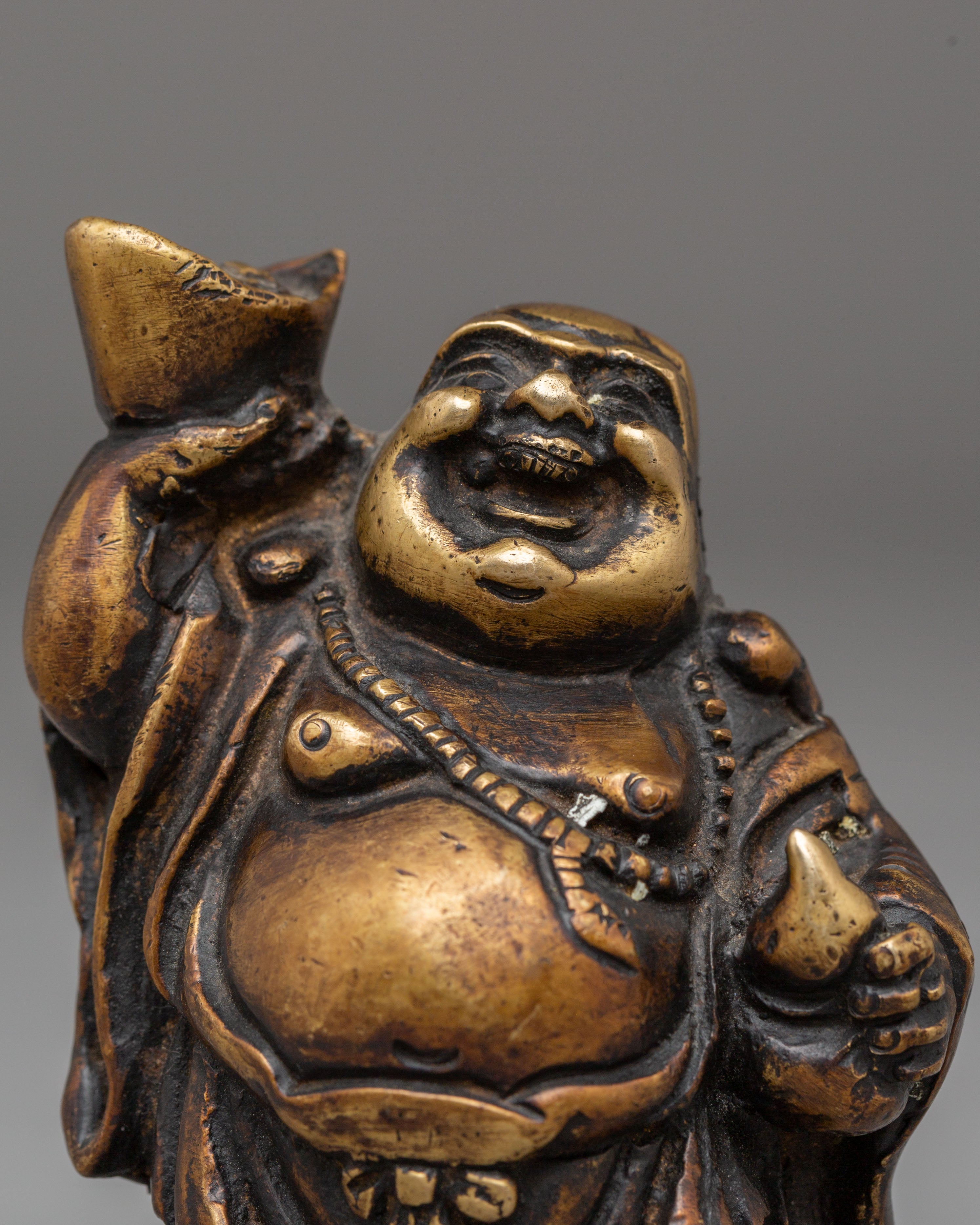 Each Laughing Buddha figurine is intricately handcrafted with joyful facial expressions, rounded forms, and relaxed postures—traditional motifs that represent contentment, generosity, and freedom from worries. The detailed craftsmanship highlights flowing robes and symbolic gestures often associated with wealth, good fortune, and protection. Bronze, known for its grounding and protective qualities, amplifies the spiritual presence of this handmade bronze Laughing Buddha set while complementing both traditional and modern interiors.