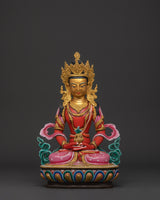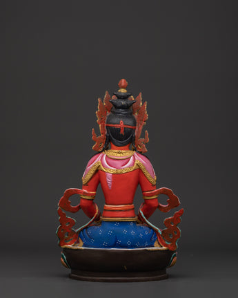 Handcrafted Tibetan Amitayus Sculpture | Copper Body with Acrylic Paint Detailing