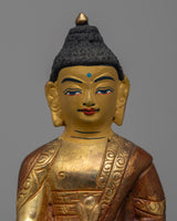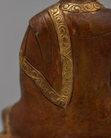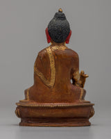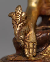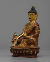 Presenting our exquisitely crafted 10cm Handmade Medicine Buddha Statue, a symbol of healing and tranquility with a copper body. This statue has a partial 24k gold plating, and the face has been subtly gold-gilded to give the image a divine touch. Because the Medicine Buddha is regarded in Buddhist traditions as a healer of both physical and mental illnesses, this statue has spiritual significance in addition to being striking to look at.