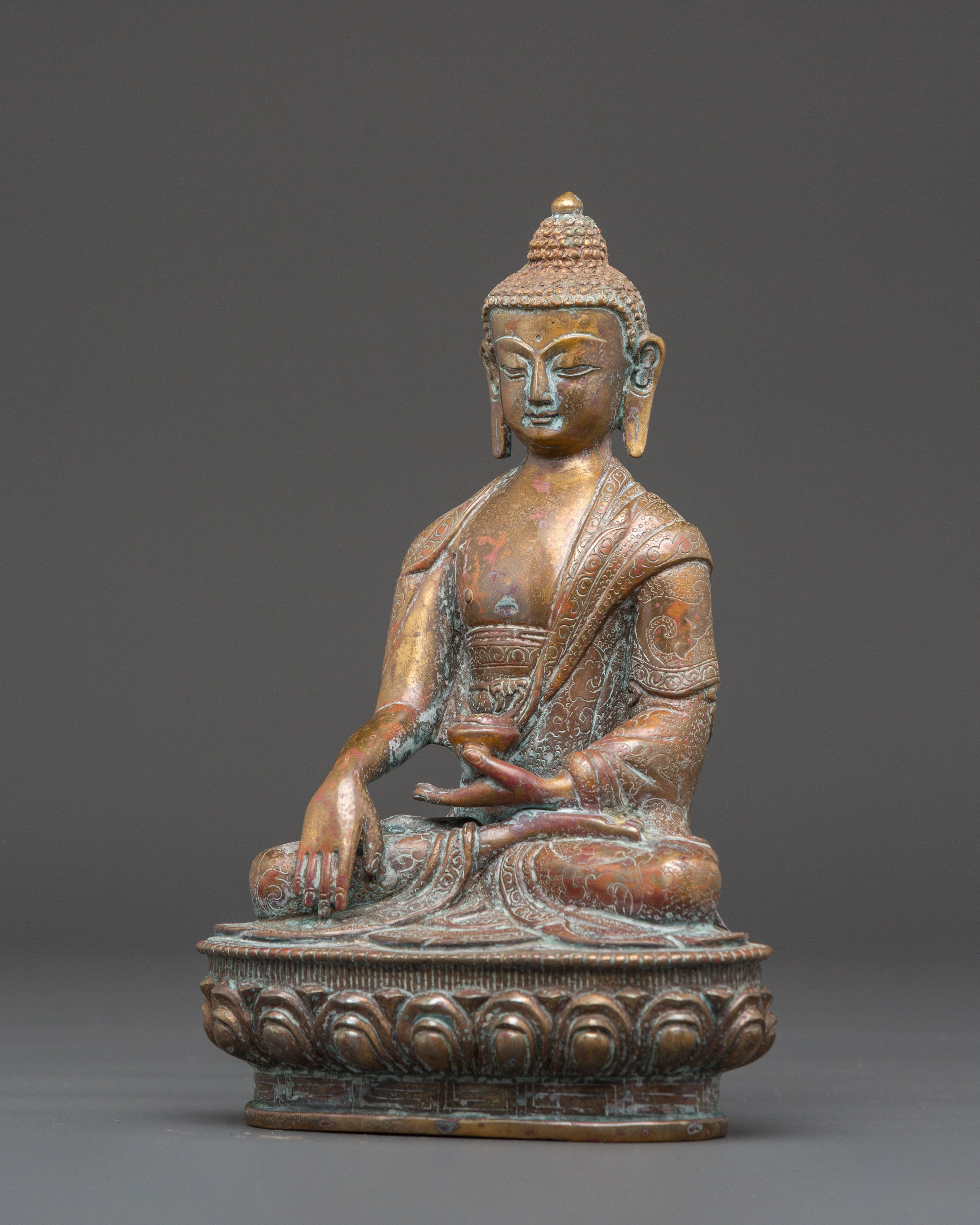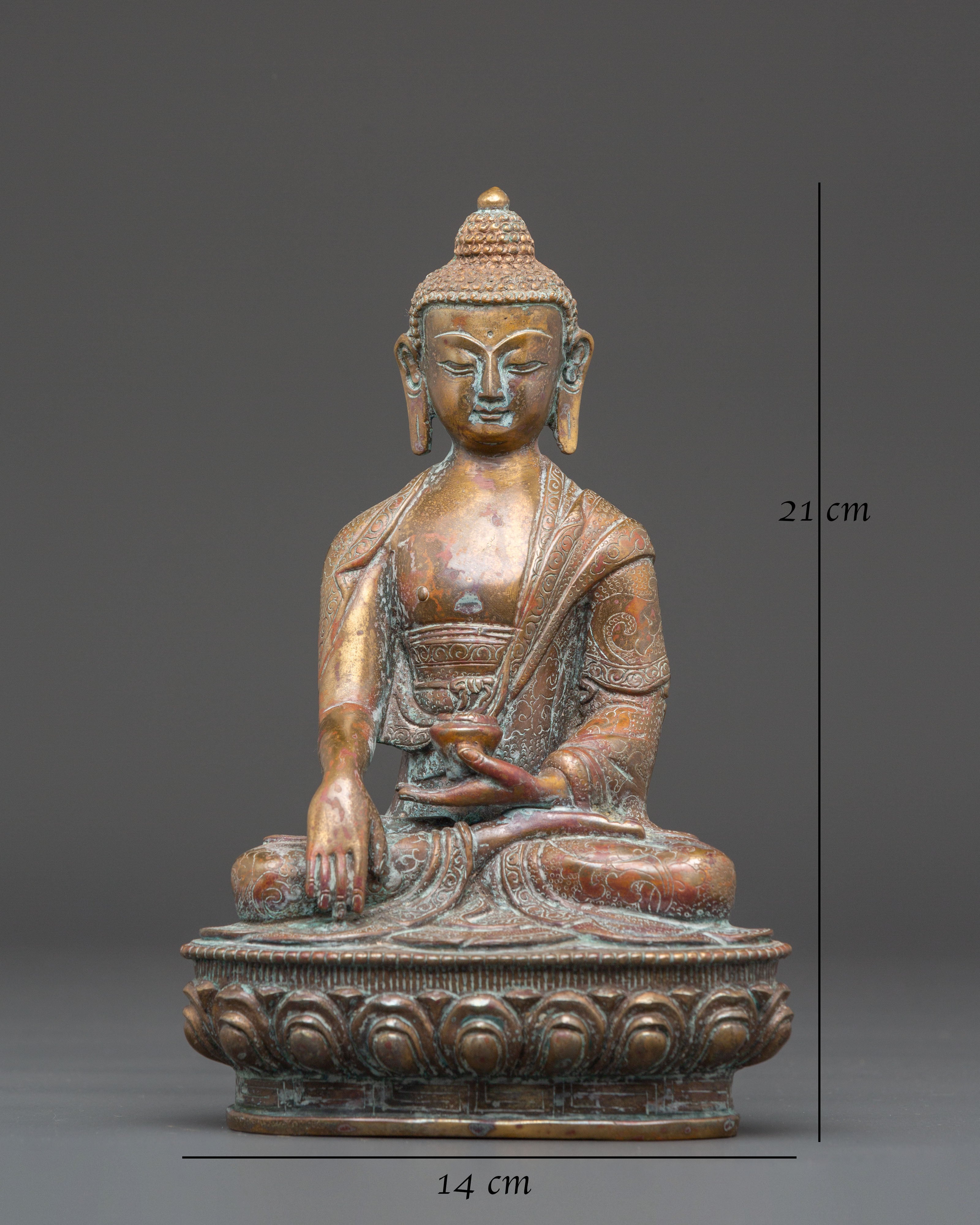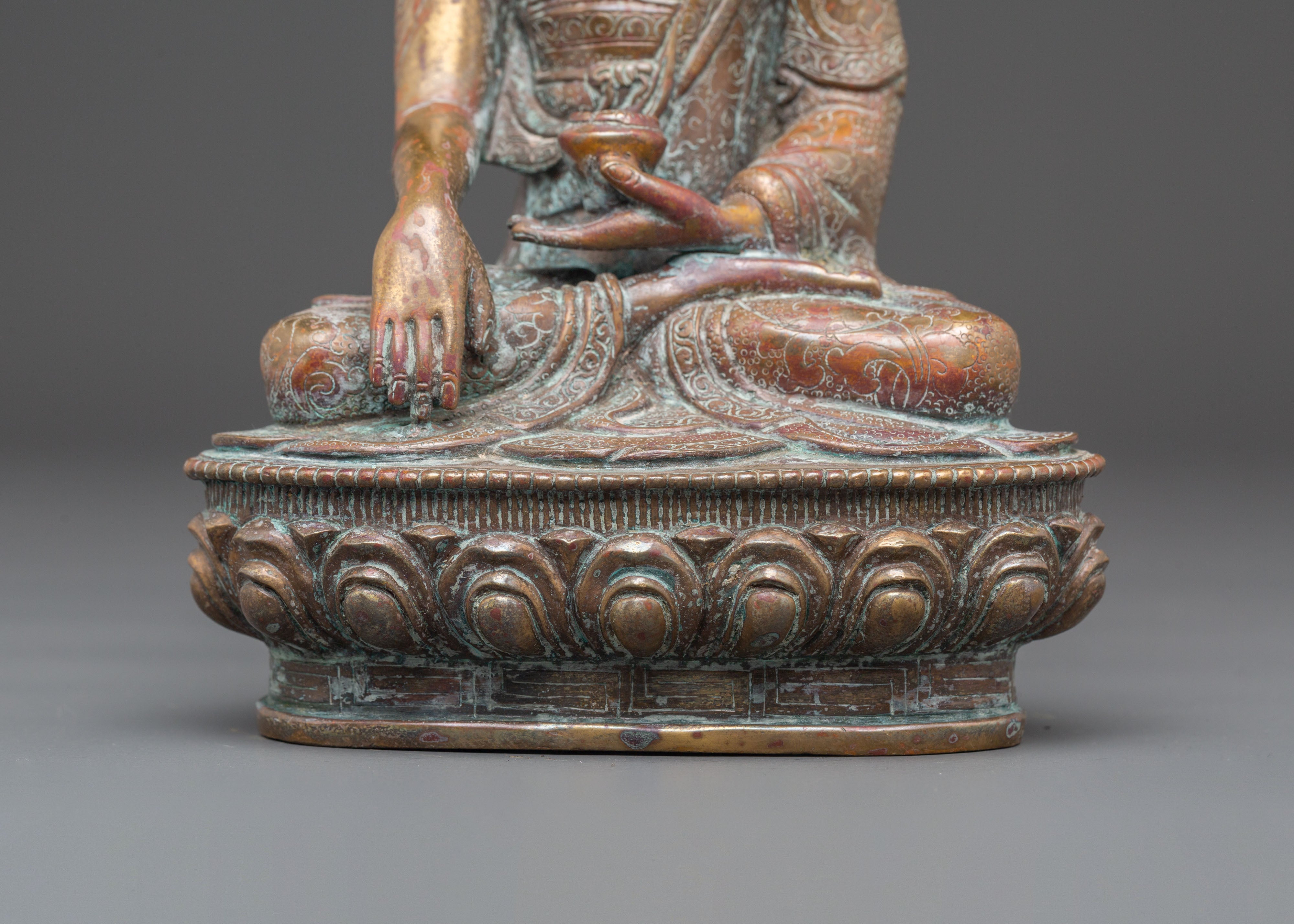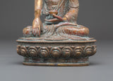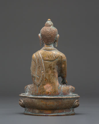 The Handmade Tibetan Statue of Shakyamuni Buddha is a stunning symbol of enlightenment and compassion, meticulously handmade by talented Himalayan artisans. This statue, crafted from copper, depicts the tranquil presence of Shakyamuni Buddha, the historical founder of Buddhism. This sculpture, shown in the earth-touching mudra (Bhumisparsha), which represents the moment of enlightenment, exudes peace, wisdom, and spiritual awakening, making it a sacred addition to your altar, meditation room, or spiritual area.