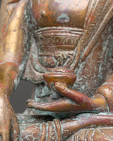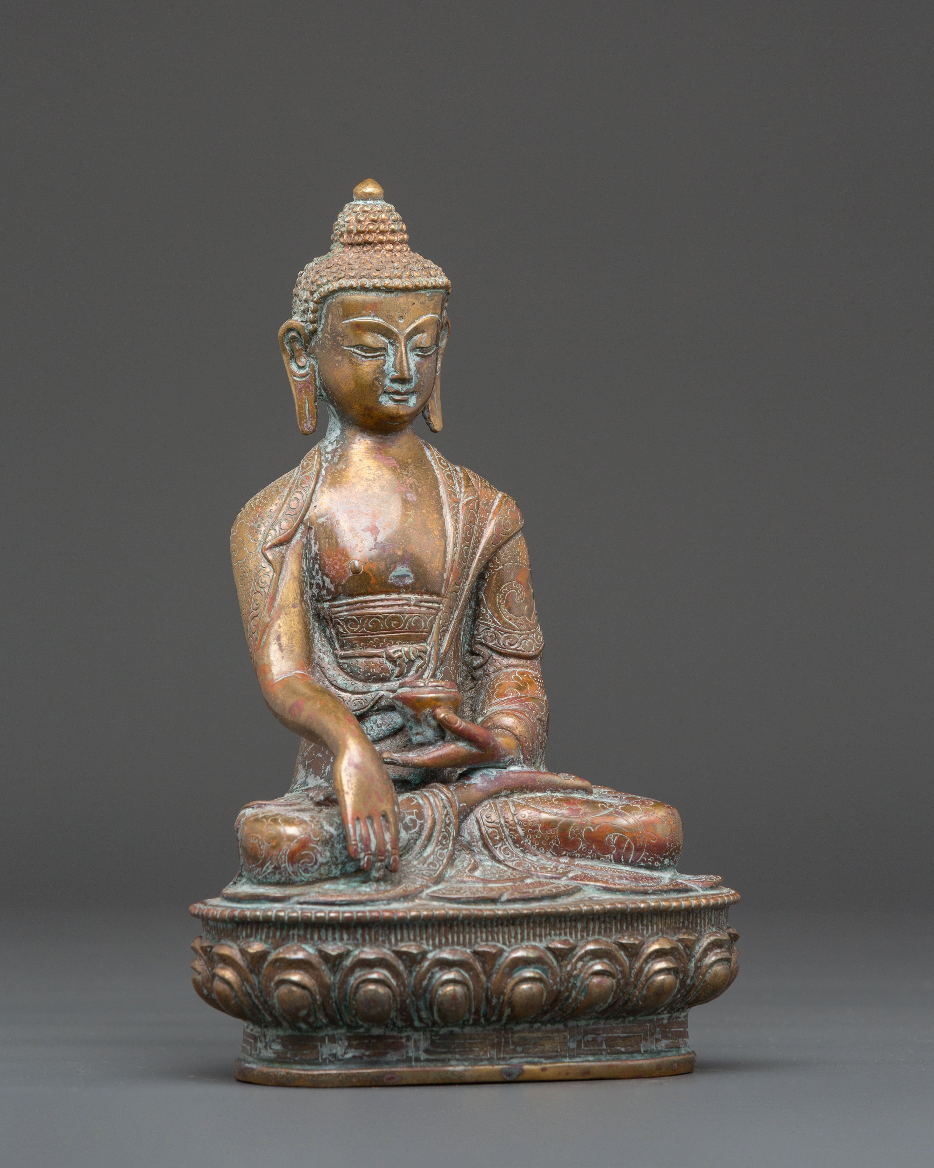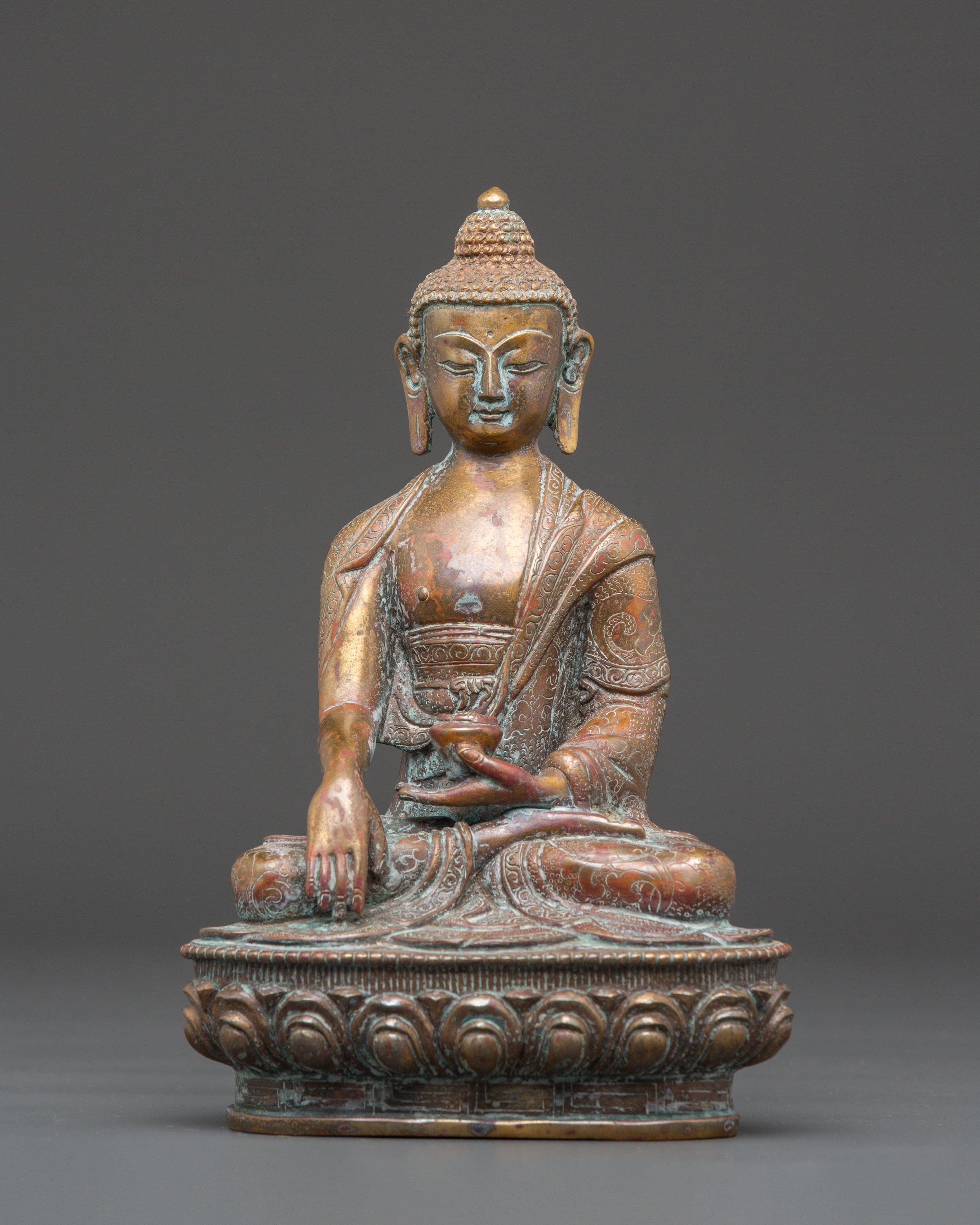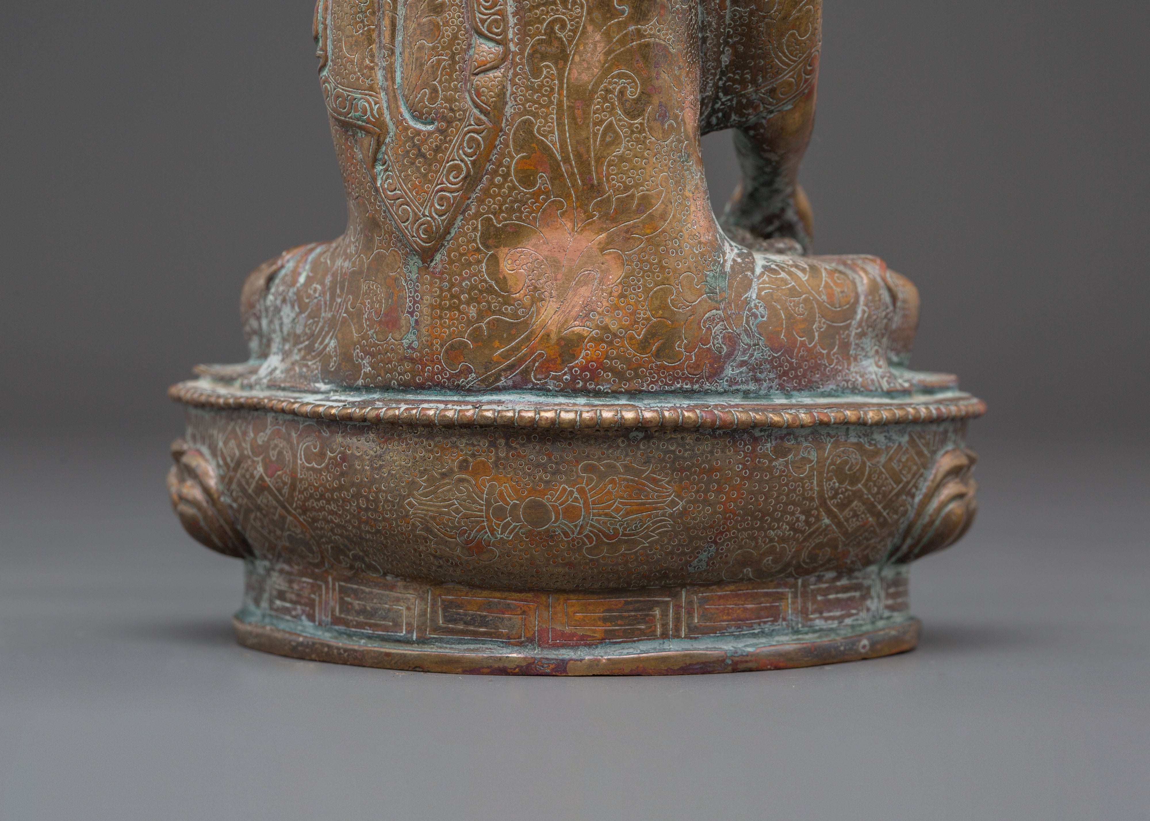 The Handmade Tibetan Statue of Shakyamuni Buddha is a stunning symbol of enlightenment and compassion, meticulously handmade by talented Himalayan artisans. This statue, crafted from copper, depicts the tranquil presence of Shakyamuni Buddha, the historical founder of Buddhism. This sculpture, shown in the earth-touching mudra (Bhumisparsha), which represents the moment of enlightenment, exudes peace, wisdom, and spiritual awakening, making it a sacred addition to your altar, meditation room, or spiritual area.