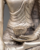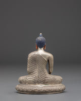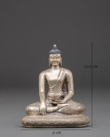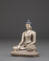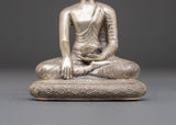 Handmade Himalayan Shakyamuni Buddha Statue | Silver Plated Copper Meditation Art