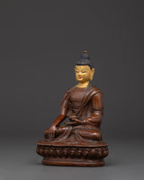 Himalayan Buddha Shakyamuni Statue | Oxidized Copper & Gold Face Painting