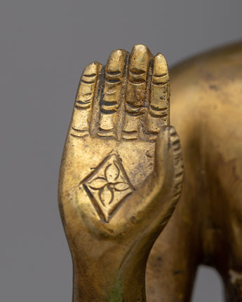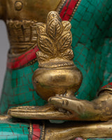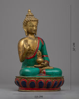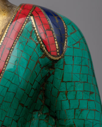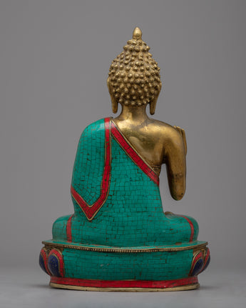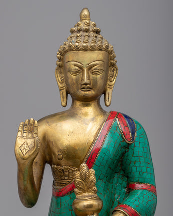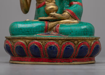Introducing the magnificent Indoor Buddha Statue, which was carefully handcrafted on a body of shining brass. A sense of calm and serenity permeates this divine work of art, which stands an impressive 30 cm tall. The statue's finely detailed design displays the artistry and devotion that went into its creation. The statue of the Buddha exudes elegance and spiritual grace due to the gemstones inlaid on his monastic robe. This beautiful statue serves as a reminder of the enlightened wisdom and inner peace that the Buddha represents, whether it is positioned as a centerpiece in your home or in a meditation corner.