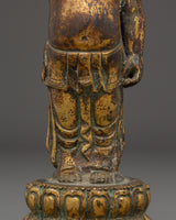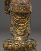 This Little Buddha copper statue is 21.5 cm tall and is very well made. It brings a peaceful presence to any environment. It is made of copper and has a detailed pattern with an antique finish that makes it more attractive and spiritual. This statue represents peace, serenity, and a strong connection to Buddhist traditions, whether it's in your home, meditation room, or on an altar.