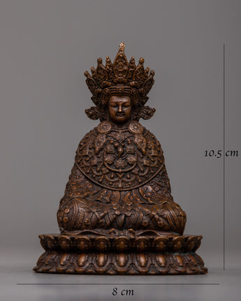 The Lord Buddha Statue, which was created using contemporary machine methods and oxidized copper, is evidence of people's enduring respect for the Enlightened One. This statue, which stands just 10.5 cm tall, perfectly captures the calm demeanor and spiritual core of the Buddha's teachings. In spite of its contemporary design, it arouses feelings of tradition and reverence, paying tribute to the profound wisdom and compassion that Lord Buddha symbolized.